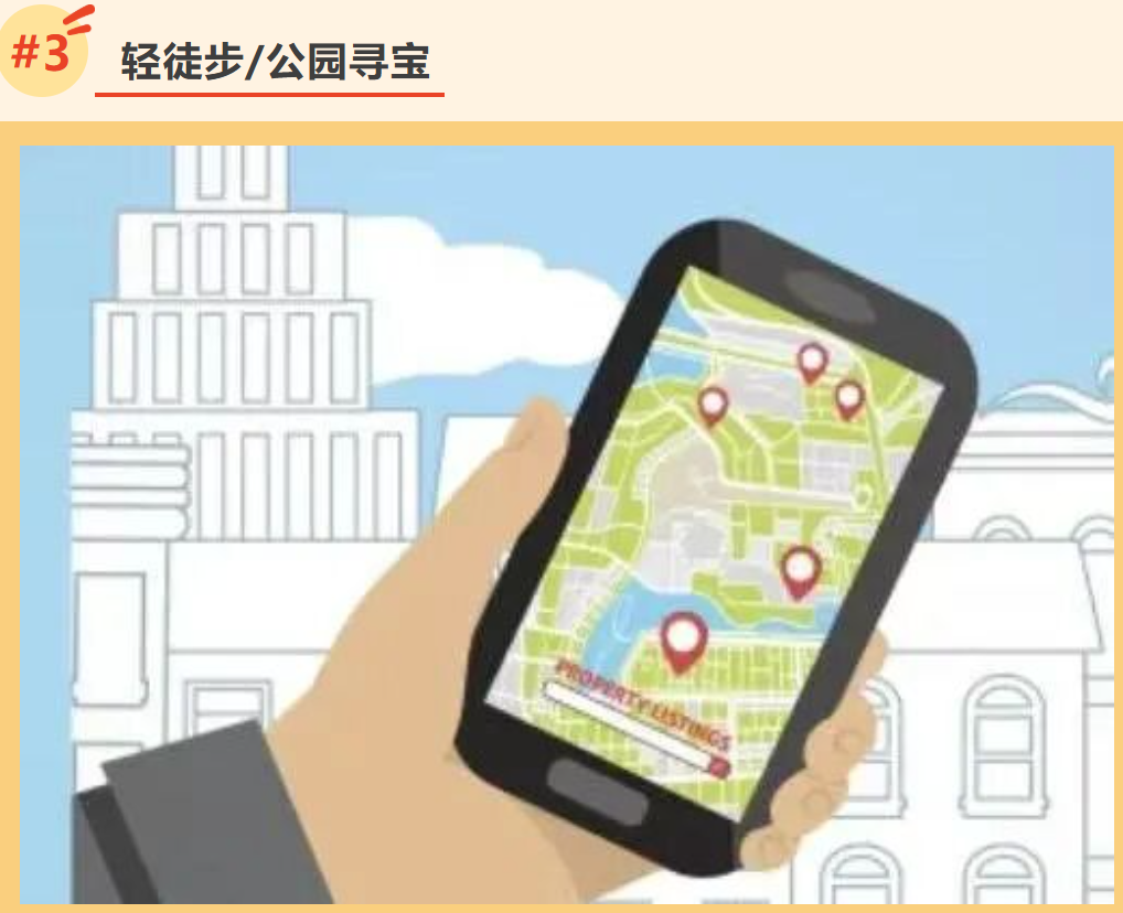 ✦ 城市周边短距离徒步、定向寻宝打卡,运动量适中,边逛边玩,轻松又治愈。