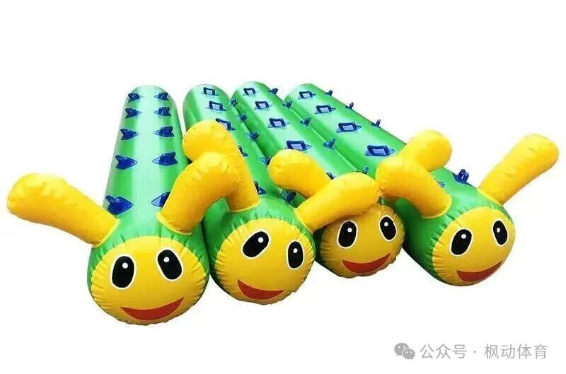 多人同步骑行巨型毛毛虫道具,喊着口号向前冲,欢乐感拉满。
