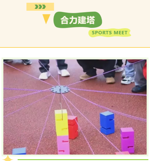 • 每队4-6人,每人手持一根绳索,共同操控搭建器,将积木块逐层搭建高塔。