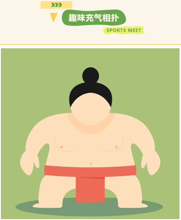 • 2人一组对战,穿上加厚充气相扑服,在5×5米的充气擂台上进行1v1对抗。