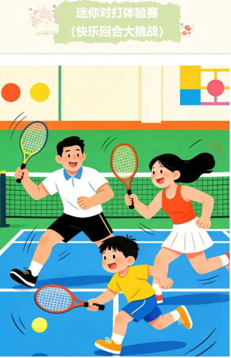 (1)亲子2人分别站在球网两侧,进行迷你对打,教练/工作人员发球开局。