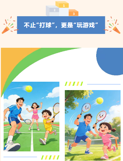 「迷你球拍·软球初体验」用儿童专用轻质软球拍,玩“追球大作战”“定点投球”,降低难度,主打一个开心不挫败。
