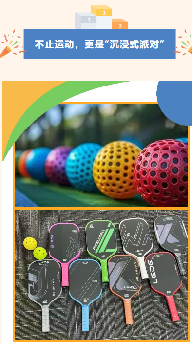 设置“匹克球小课堂”(专业教练10分钟新手教学,零基础也能快速上手)、“运动能量补给站”(提供低糖饮品、健康小零食,补充体力不耽误参与)。