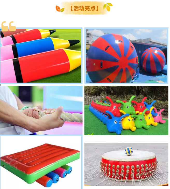 将趣味游戏与传统竞赛相结合,在有趣的活动中考验团队竞争和团队合作能力。
