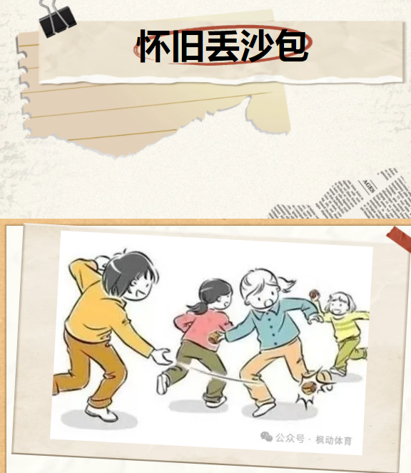 (1)划分指定场地,攻方家庭站在场地两侧丢沙包,守方家庭在场地内躲避;
