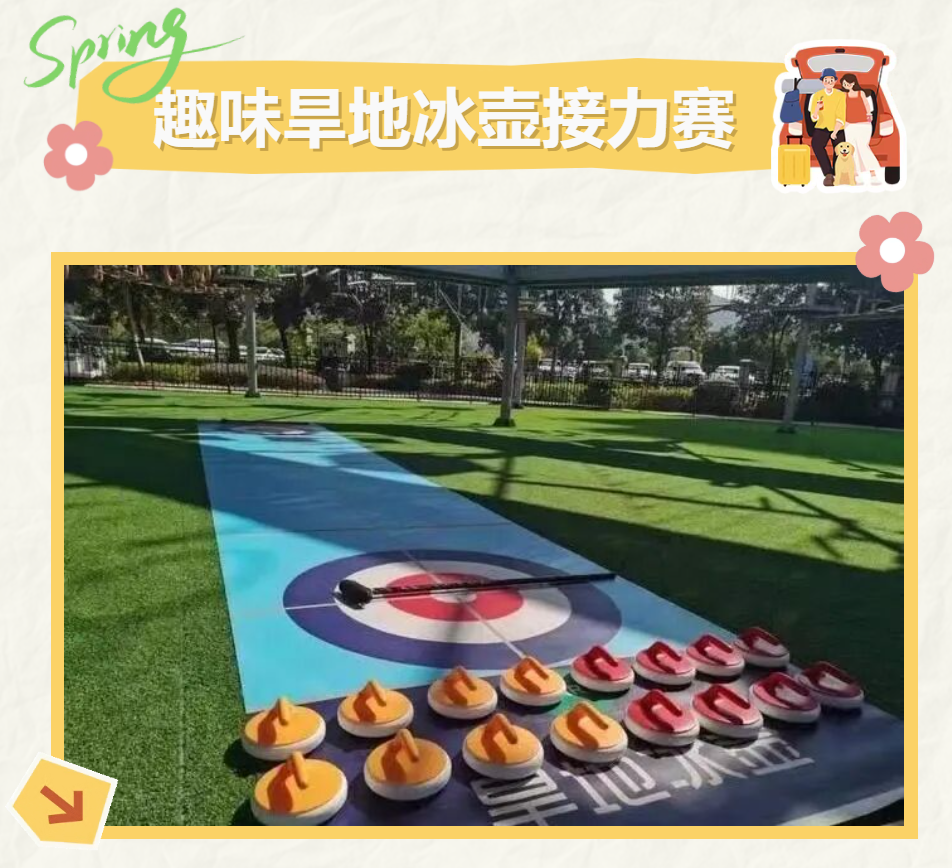 (1)队员按顺序接力上场,用手推动旱地冰壶在草坪滑行,目标是让冰壶停在得分区的高分区内。